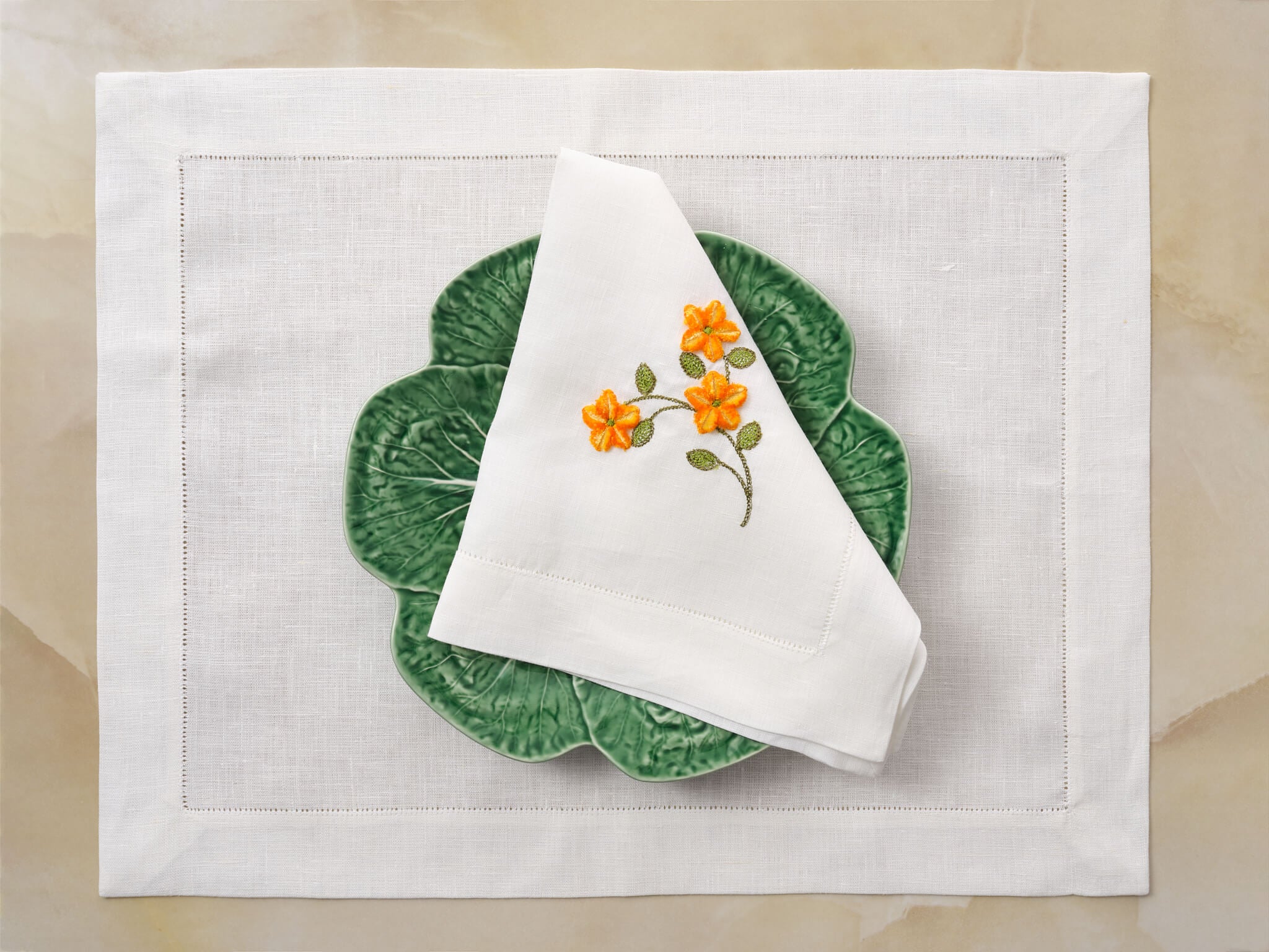 - Napkin: 45 × 45 cm / 18'' × 18''